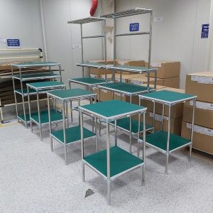 - Dựa theo vật liệu sản xuất sẽ có bàn thao tác bằng inox, bằng nhôm định hình, bằng thép sơn tĩnh điện,….