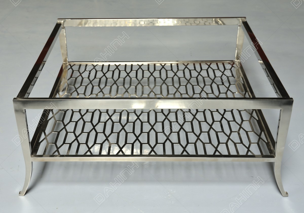 Chân bàn trà inox khung vuông được gia công từ inox 304 có khả năng chống gỉ sét, chống oxy hóa, độ bền cao. Cắt bằng máy laser hoặc đột cnc, sau đó được chấn gấp rồi hàn ghép lại với nhau để tạo thành sản phẩm hoàn chỉnh.