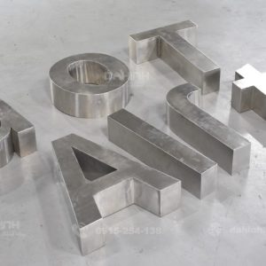 Sản phẩm gia công chữ nổi inox được sản xuất bằng phương pháp cắt laser, hàn hoàn thiện.