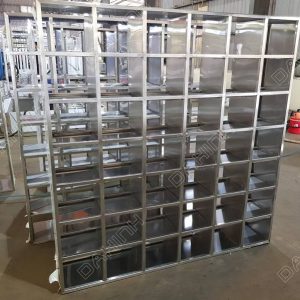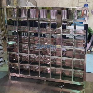 Tủ giày do Cơ Khí Đại Nam Vina thực hiện được sản xuất bằng vật liệu inox có độ sáng bóng, độ bền cao. Ứng dụng phương pháp gia công cơ khí chính xác với sự hỗ trợ của hệ thống máy móc hiện đại cho những đường cắt sắc nét, đảm bảo tính thẩm mỹ cao.