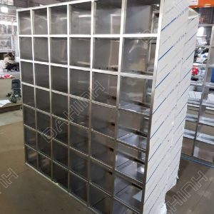 Tùy thuộc vào yêu cầu của khách hàng mà Cơ Khí Đại Nam Vina sẽ sản xuất theo kích cỡ riêng với số ô để giày phù hợp cùng 1 số tiện ích đi kèm như cửa tủ, có chỗ cài tên,…đáp ứng nhu cầu để giày của người dùng. Quý khách có thể đặt gia công số lượng lớn chỉ trong thời gian ngắn vì chúng tôi có hệ thống 2 xưởng với tổng sản xuất diện tích 10.000m2 và đội ngũ gần 200 kỹ sư, thợ cơ khí.