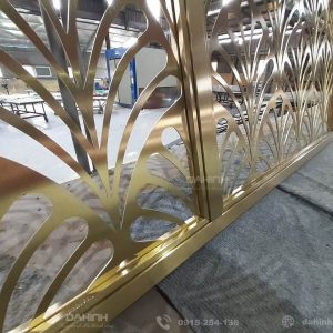 Vách Ngăn CNC Inox Mạ Vàng – DH081121 là một trong vô số các sản phẩm Nội Thất Inox Mạ PVD được đặt hàng gia công hoàn thiện & Xi Mạ tại Xưởng Cơ Khí Cơ Khí Đại Nam Vina