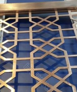 Loại vách ngăn được sản xuất từ inox tấm, gia công trên công nghệ CNC tiên tiến, sau đó mạ thêm 1 lớp PVD – được đánh giá là công nghệ mạ chân không hiện đại nhất thế giới giúp làm tăng độ bền của sản phẩm lên gấp 2 – 3 lần, đồng thời tạo lớp bề mặt có màu vàng sáng bóng.
